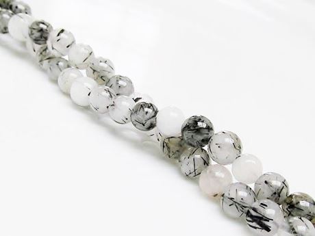 6x6 mm, round, gemstone beads, rutilated quartz, black, natural