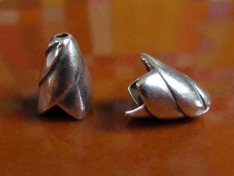 11x4.7 mm, knijp koord eindkapjes, 2 mm gaatje, 4 blaadjes, JBB findings, verzilverd tin, 2 stuks