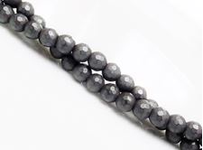 6x6 mm, rond, edelsteen kralen, hematiet, nacht grijs gemetalliseerd, in facetten, mat