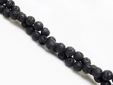 6x6 mm, rond, edelsteen kralen, lavasteen, zwart gekleurd, gewaxt