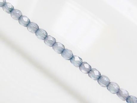 4x4 mm, Tsjechische ronde facetkralen, mat kristal, doorschijnend, licht grijs blauwe glans
