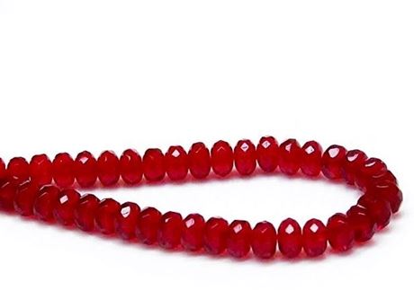 Tsjechische facetkralen, rondellen, 6x8 mm – kleur: crayola rood, ondoorzichtig, travertin afwerking – een eenheid bevat 24 kralen