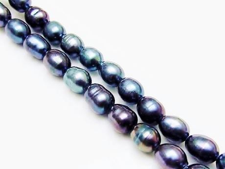 Organische edelsteen, zoetwaterparel, 6-7 mm, rijstkorrel/ovaal vorm, pauwblauw – een éénheid is +/- 18 cm lang en heeft +/- 25 kralen