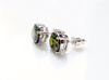 Oorknopjes in “briljant slijpvorm", sterling zilver, ronde kubiek zirkonia, large, 9 mm, mosgroen