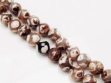 Edelsteen, natuurlijjke agaat, 10x10 mm, ronde kralen – mat - diep bruin & wit gekleurd, Tibetaanse stijl - Mohs' hardheid 6.5-7.0 – een eenheid is +/- 19 cm lang en heeft +/- 18 kralen