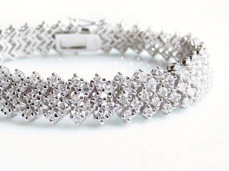 “Zirkonia in ruitvorm” armband in sterling zilver, een golf van ronde kubiek zirkonia in ruitpatroon